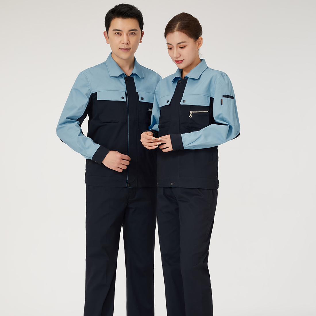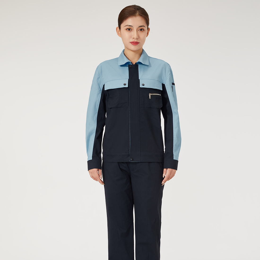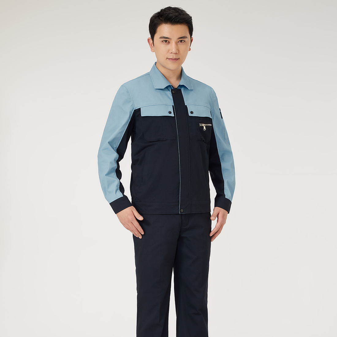 深蘭拼淺藍(lán)色工作服AC2205-1
