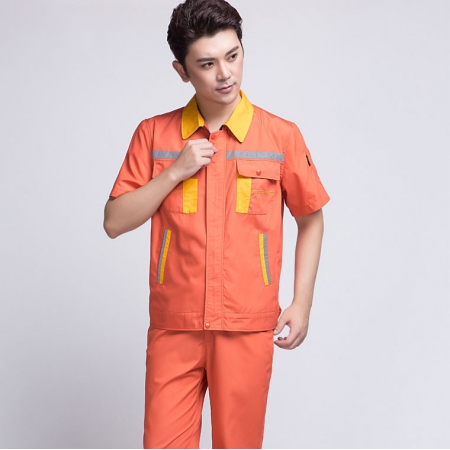 橘黃拼黃色短袖工作服AD09-5