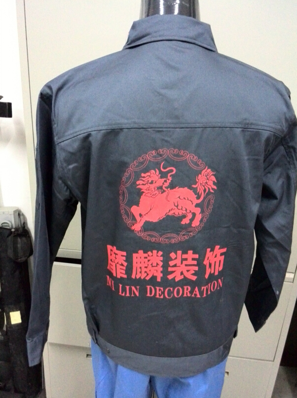 靡麟裝飾此次選擇的顏色較暗,與鋁合金門窗材質(zhì)顏色較接近,此款顏色較新穎,耐臟耐磨。胸口口袋選擇的是雙口袋,容量較大,拿取方便。工作服選擇前后印字,印字顏色較亮,后背的麒麟圖案起到了宣傳和穩(wěn)固企業(yè)形象的作用。
