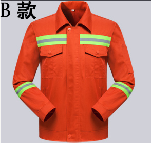 一線員工工作服主要是以亮色的橙色的為主,衣服的反光條的多處設(shè)計(jì)。