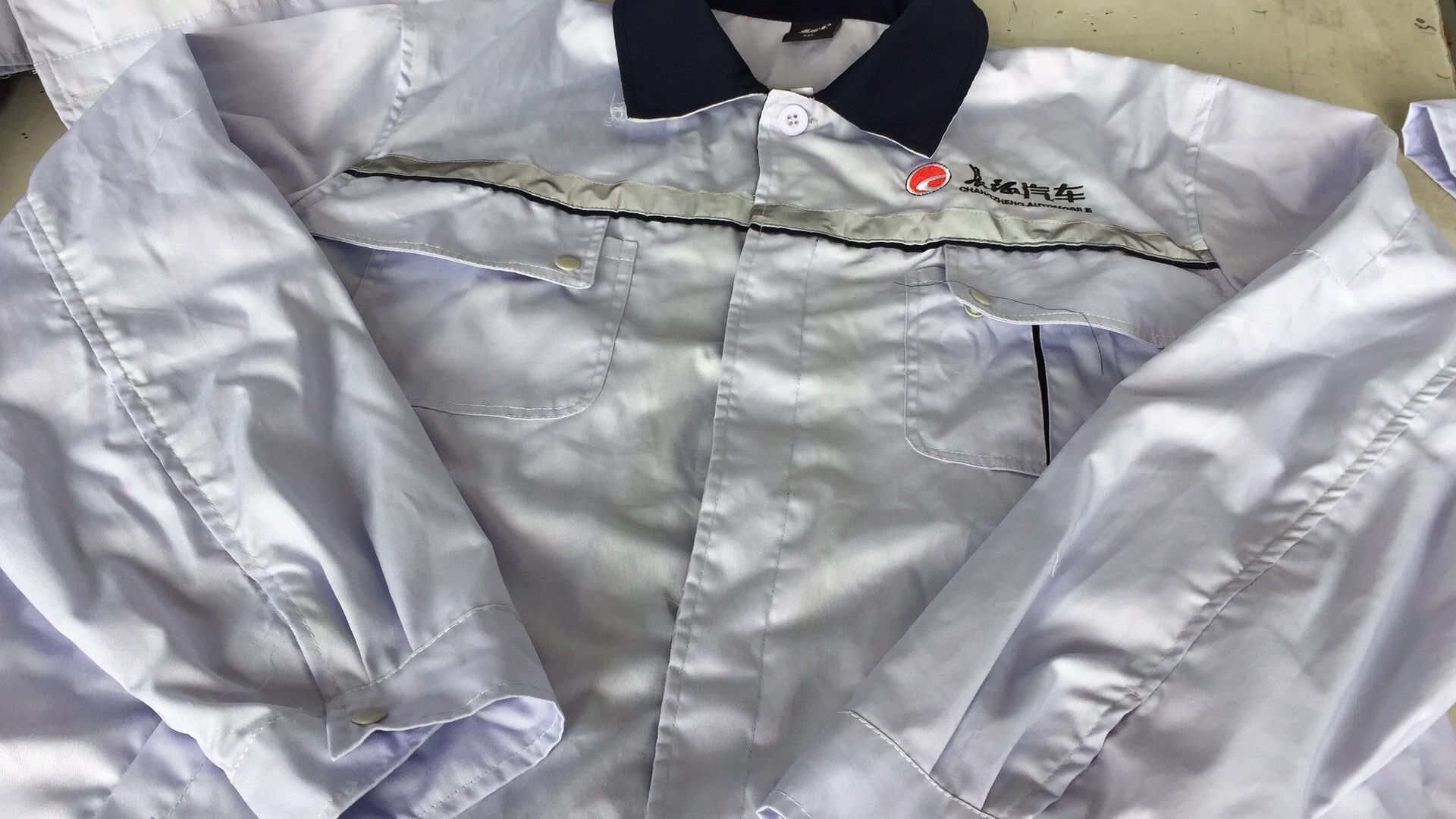 河北長征汽車是一家汽車制造公司。內(nèi)有員工叁佰多人。每年夏季都要開始定做夏季工作服。夏季工作服分為兩種,短袖和長袖。夏季長袖工作服的款式和短袖保持一致。只是袖子長度的區(qū)別。目前款式已經(jīng)確定,產(chǎn)前樣已經(jīng)出品。采用了非常淺的灰色面料拼藏青色的款式。款式圖片如下: