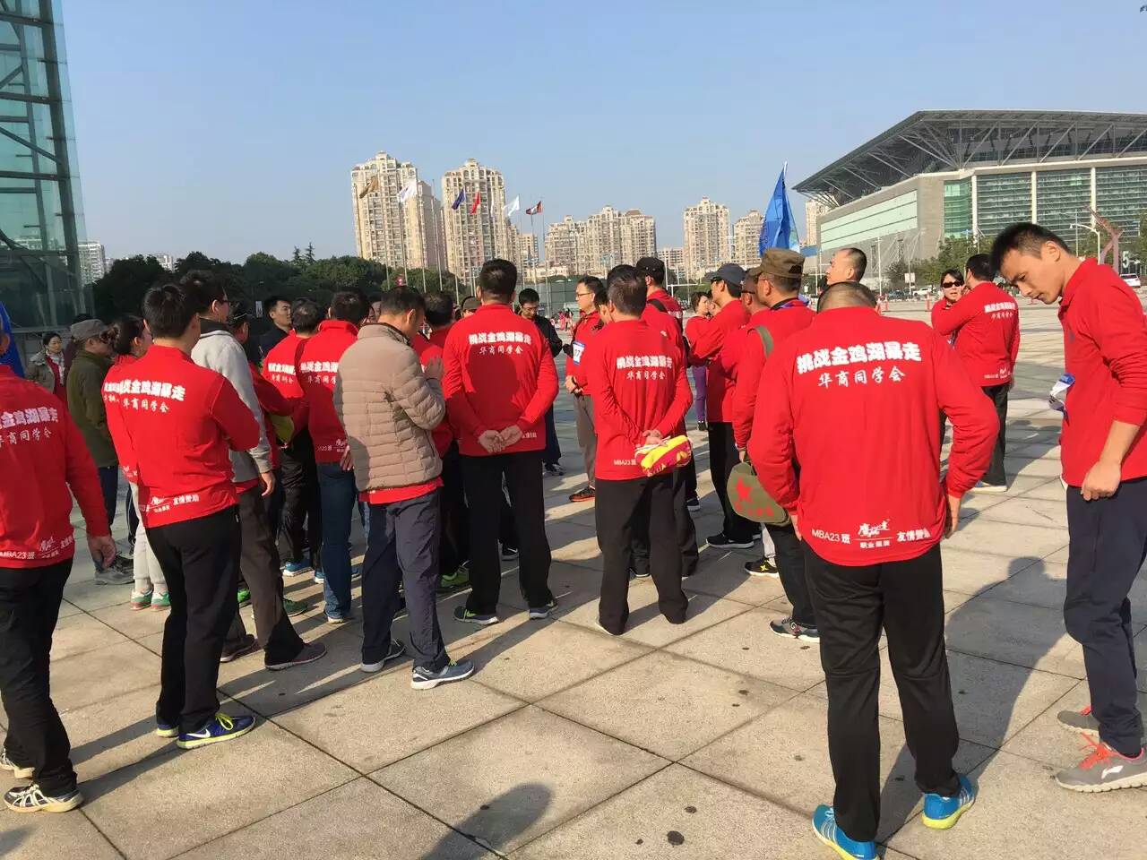 前幾天蘇州陰雨綿綿,但是今日蘇州的天氣格外的好,陽光曬著格外溫暖,今天比太陽更加有熱度的應(yīng)該屬蘇州華商同學(xué)會(huì)的MBA23班的同學(xué)們了,因?yàn)樗麄兘袢赵谝黄鹋e行“挑戰(zhàn)金雞湖暴走”的活動(dòng),通過運(yùn)動(dòng)來享受閑暇時(shí)光,也通過此次運(yùn)動(dòng)來增進(jìn)同學(xué)間情誼,增強(qiáng)體質(zhì);這次運(yùn)動(dòng)服裝也是由蘇州鷹諾達(dá)職業(yè)裝友情贊助,大紅的服裝更是為這次活動(dòng)點(diǎn)了一把激情的火焰;各位選手加油,愛運(yùn)動(dòng)、愛健康。