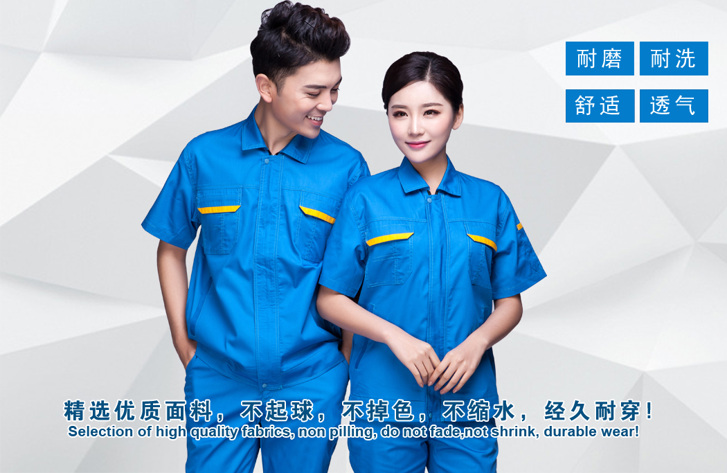二、機(jī)械工人為了避免衣服由于寬松而被機(jī)器纏絞在內(nèi),面料需要耐摩結(jié)實(shí)。工作服要求緊身,下擺要有松緊或是可以收緊、袖口帶松緊可以收的、褲腿都是可以扣起來的,與此同時(shí),布料要求較結(jié)實(shí)、耐磨,防油滲透,色澤以較深為宜。