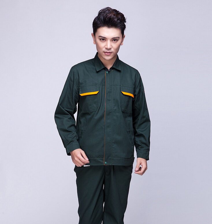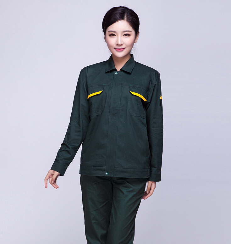 第一類運(yùn)動(dòng)風(fēng)格工作服,運(yùn)動(dòng)風(fēng)格的工作服以它著裝便利、瀟灑利落而深受廣大消費(fèi)者的喜愛。它吸收了運(yùn)動(dòng)服、體育裝、勞動(dòng)裝的風(fēng)格特點(diǎn),融合了現(xiàn)代意識(shí)而變化出來的具有都市風(fēng)格的服裝。運(yùn)動(dòng)風(fēng)格的服裝從造型觀感上來看多采用線造型和面造型。線造型以弧線和直線居多;面造型以相對規(guī)整地拼接形式居多。在面料上多采用針織、棉等材料,廓形以h型和o型為主。色彩多使用高明度和高純度,如:紅、白、黃、藍(lán)等。領(lǐng)型以v子領(lǐng)、翻領(lǐng)居多,門襟采用拉鏈、紐扣、繩帶固定,且左右對稱。袖型多采用插肩袖、落肩袖、寬松袖,袖口多為螺紋緊口袖。口袋以暗袋、插袋為主,下身配以錐形長褲和運(yùn)動(dòng)褲,用嵌入式彩色線條分割造型。