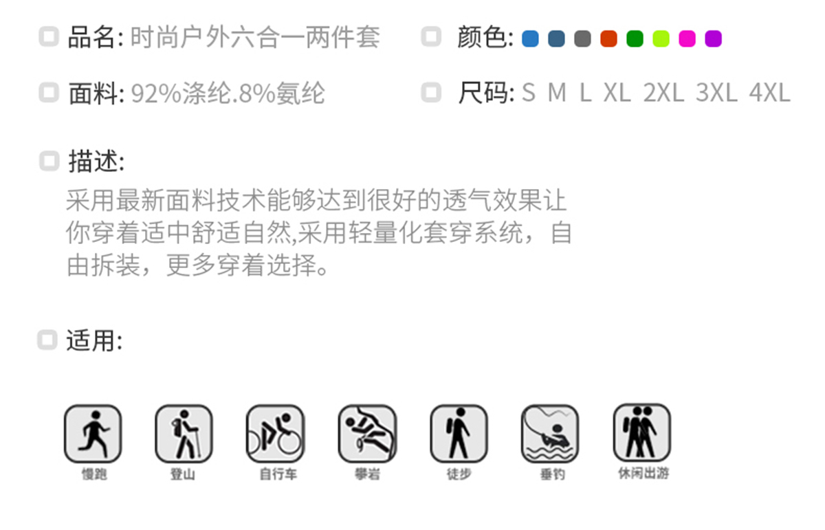 本產(chǎn)品共8個(gè)尺碼:XS、S、M、L、XL、2XL、3XL、4XL 覆蓋99.5%的人群。查看尺碼表>