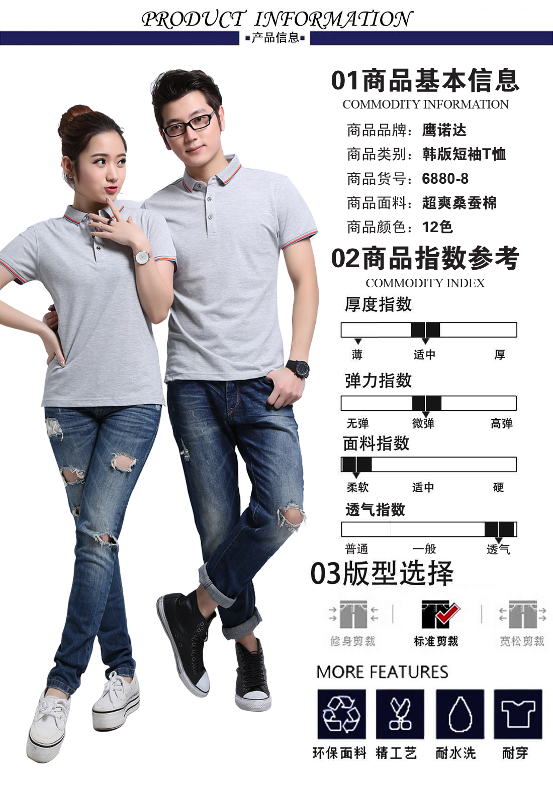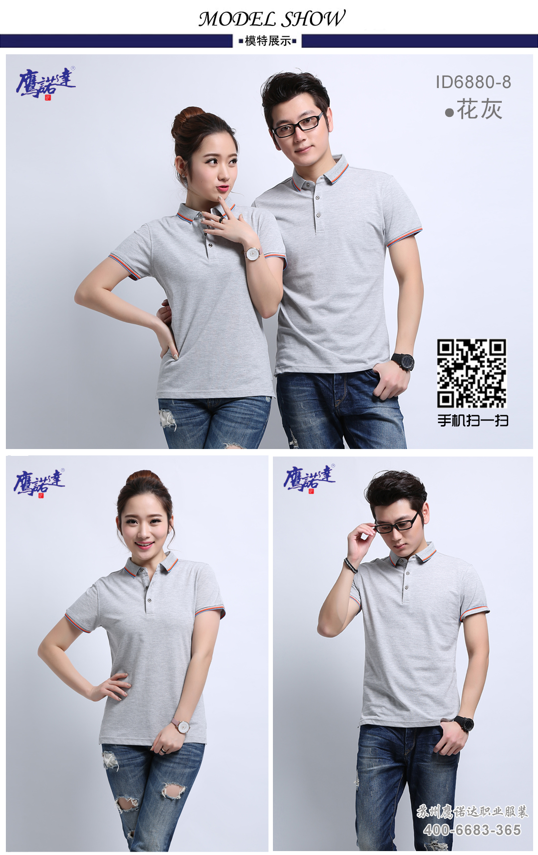 灰色桑蠶棉t恤衫工作服ID6880系列