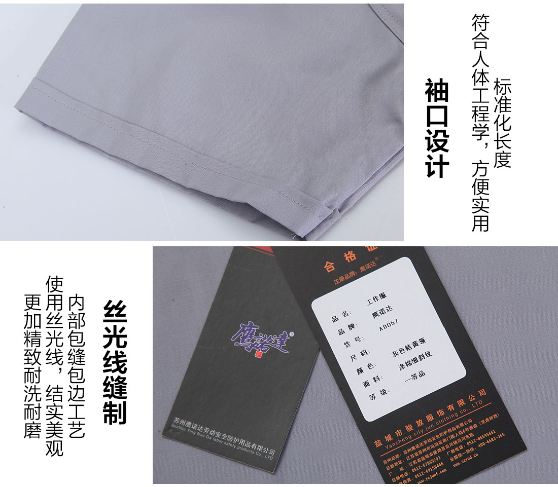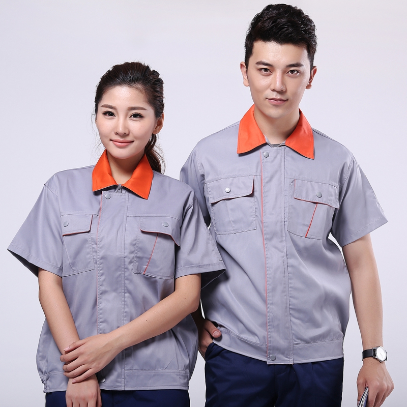 淺灰拼橘黃短袖工作服AD057-DX