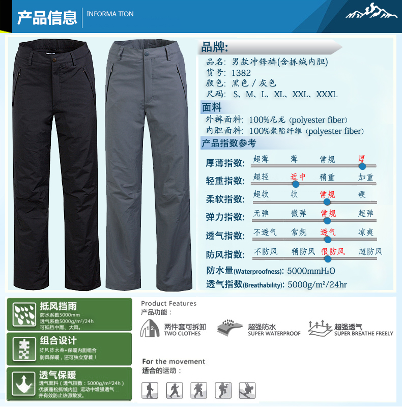 2015新款防風(fēng)保暖男沖鋒褲CFKG1382