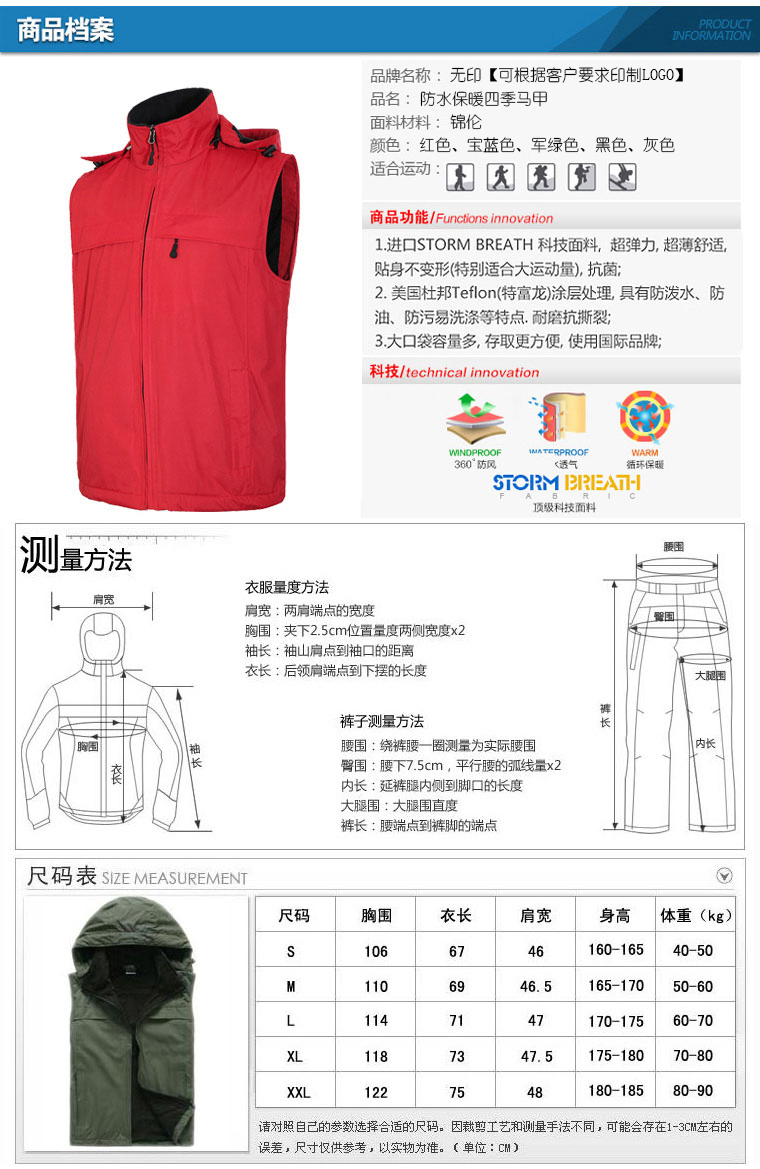 本產(chǎn)品共8個尺碼:XS、S、M、L、XL、2XL、3XL、4XL 覆蓋99.5%的人群。查看尺碼表>