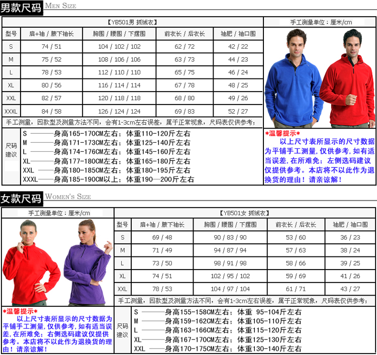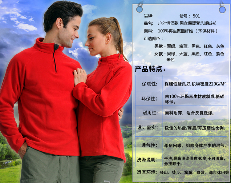 男女情侶可套穿舒適保暖抗靜電抓絨衣ZRY501