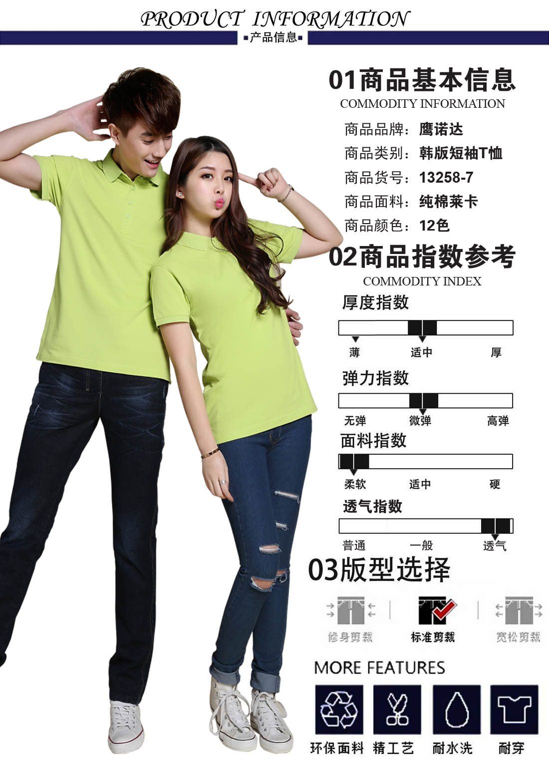 果綠純棉萊卡t恤衫工作服ID13258-7