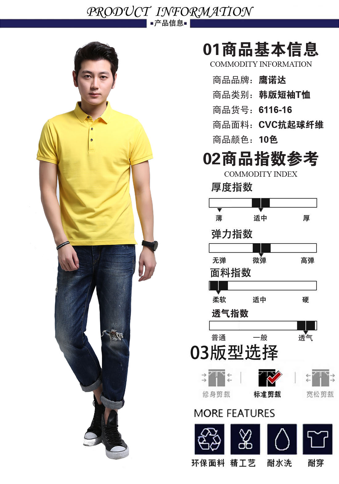 黃色CVC抗起球纖維t恤衫工作服ID6116-16