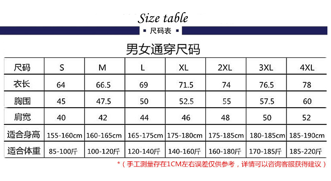 本產(chǎn)品共8個尺碼:XS、S、M、L、XL、2XL、3XL、4XL 覆蓋99.5%的人群。查看尺碼表>