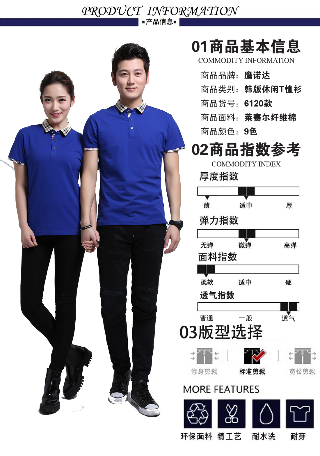 萊賽爾纖維棉夏季短袖T恤衫ID6120-2