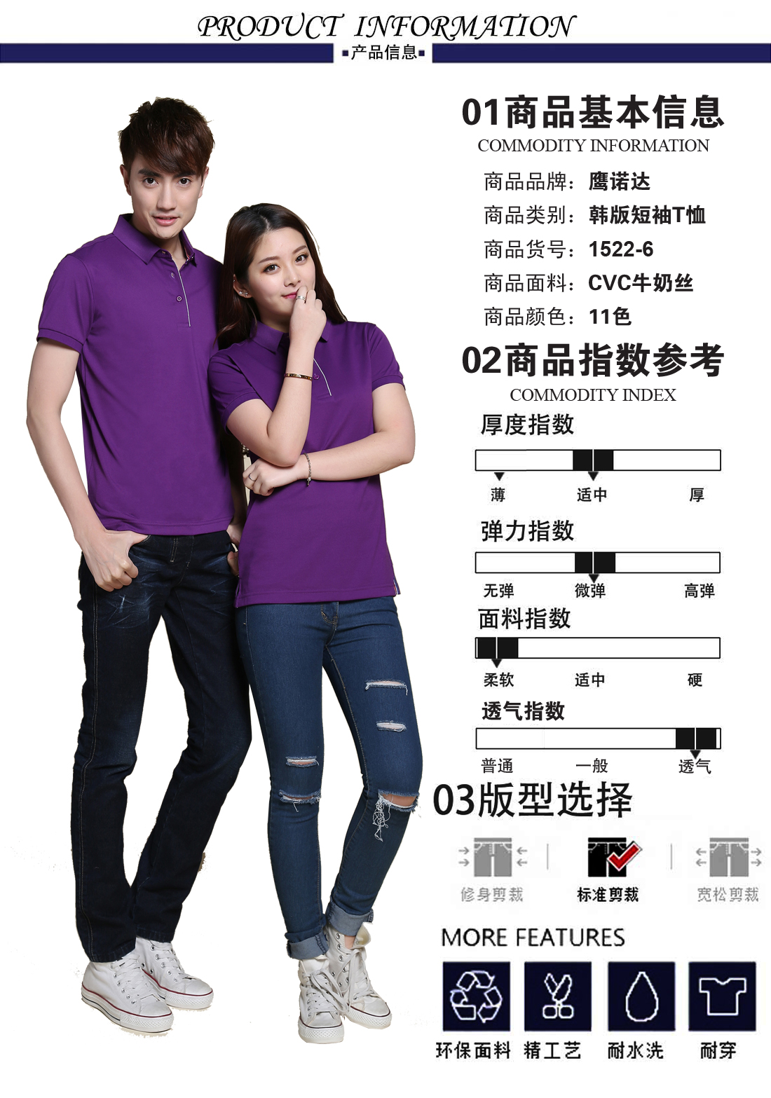 紫色翻領(lǐng)CVC牛奶絲T恤衫ID1522-6
