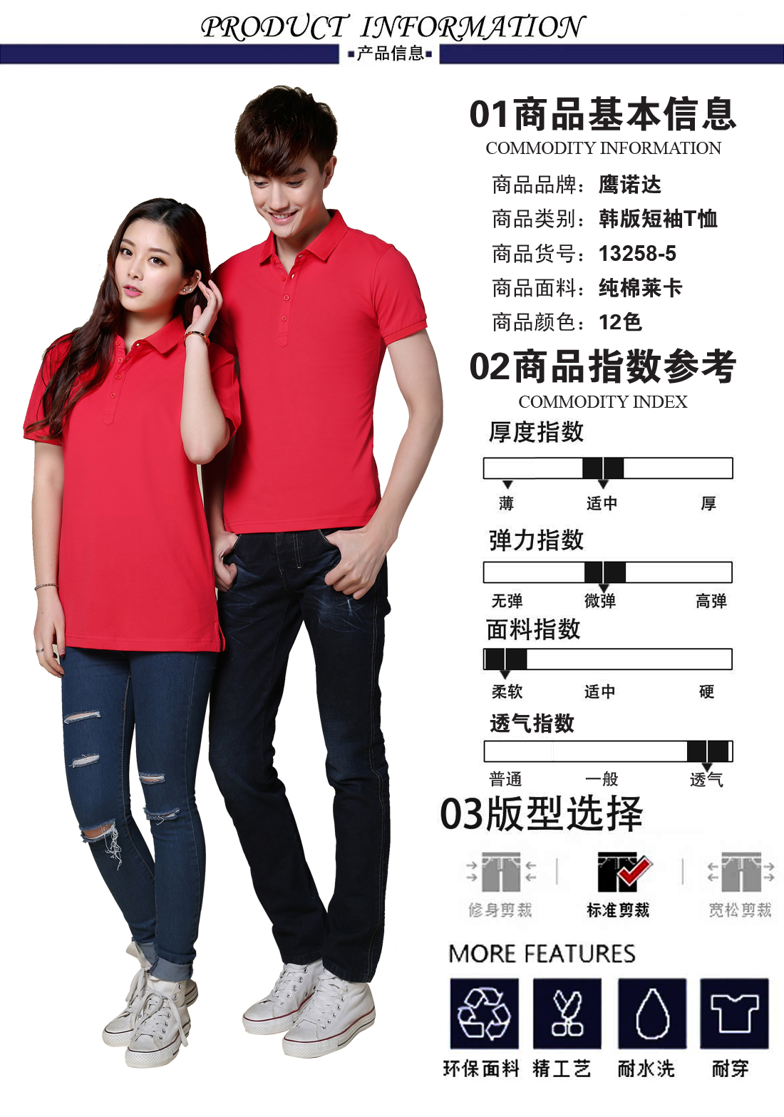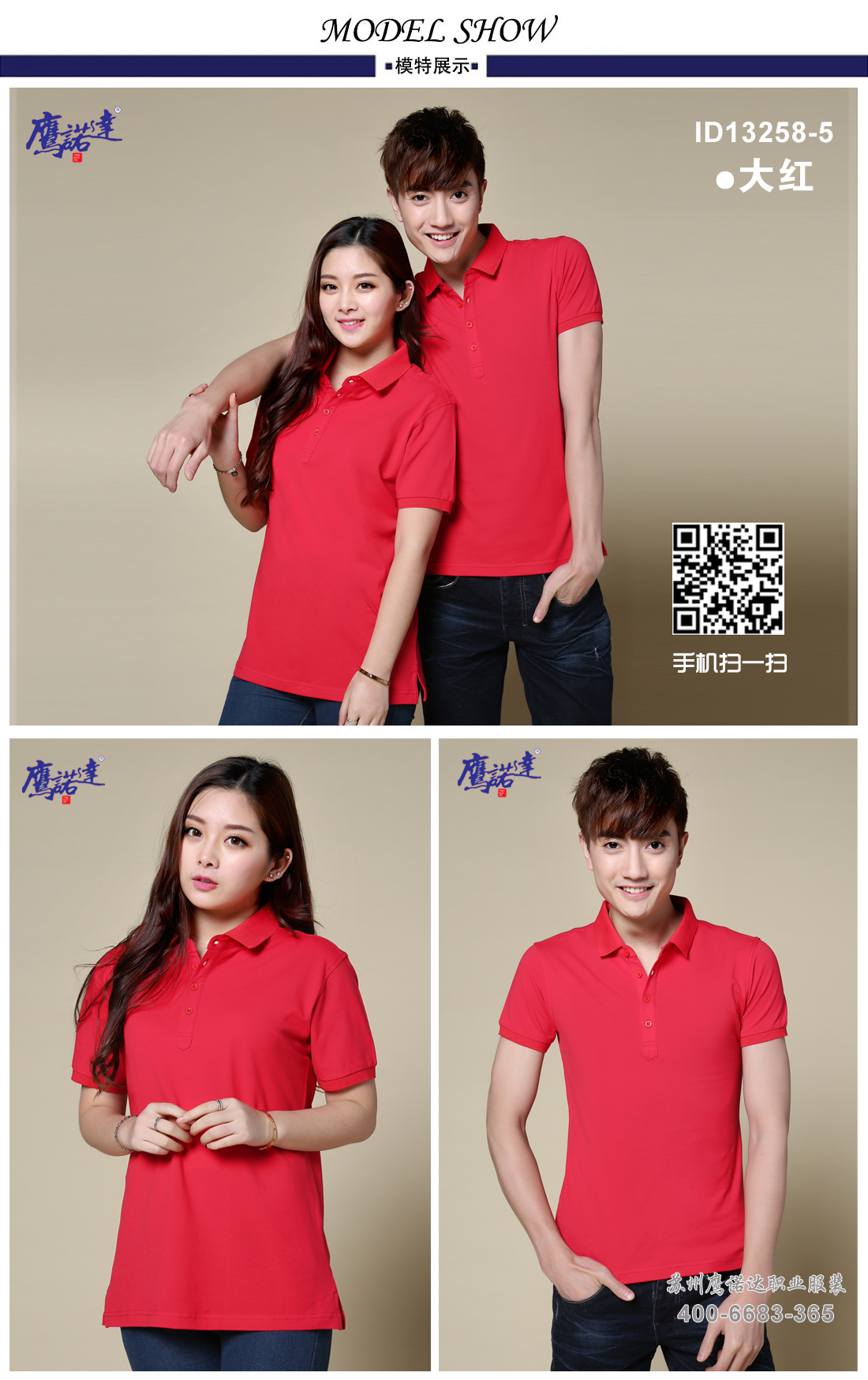 大紅翻領(lǐng)純棉萊卡Polo衫ID13258-5