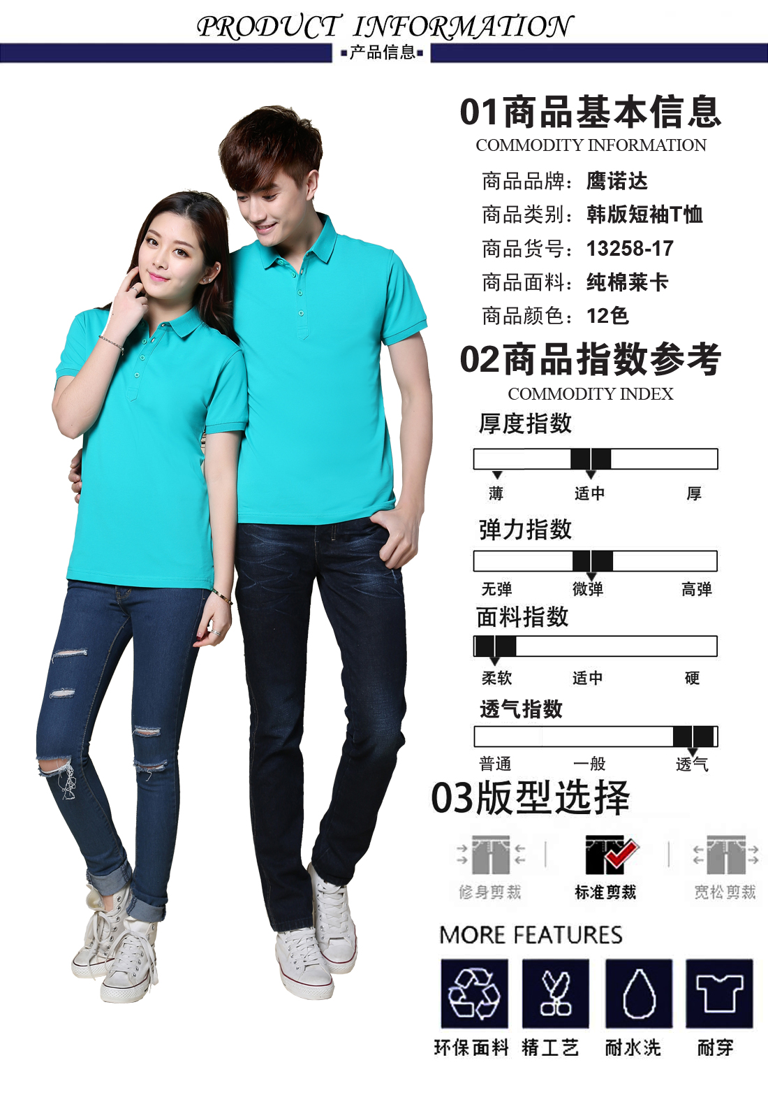 中綠翻領(lǐng)純棉萊卡Polo衫ID13258-17