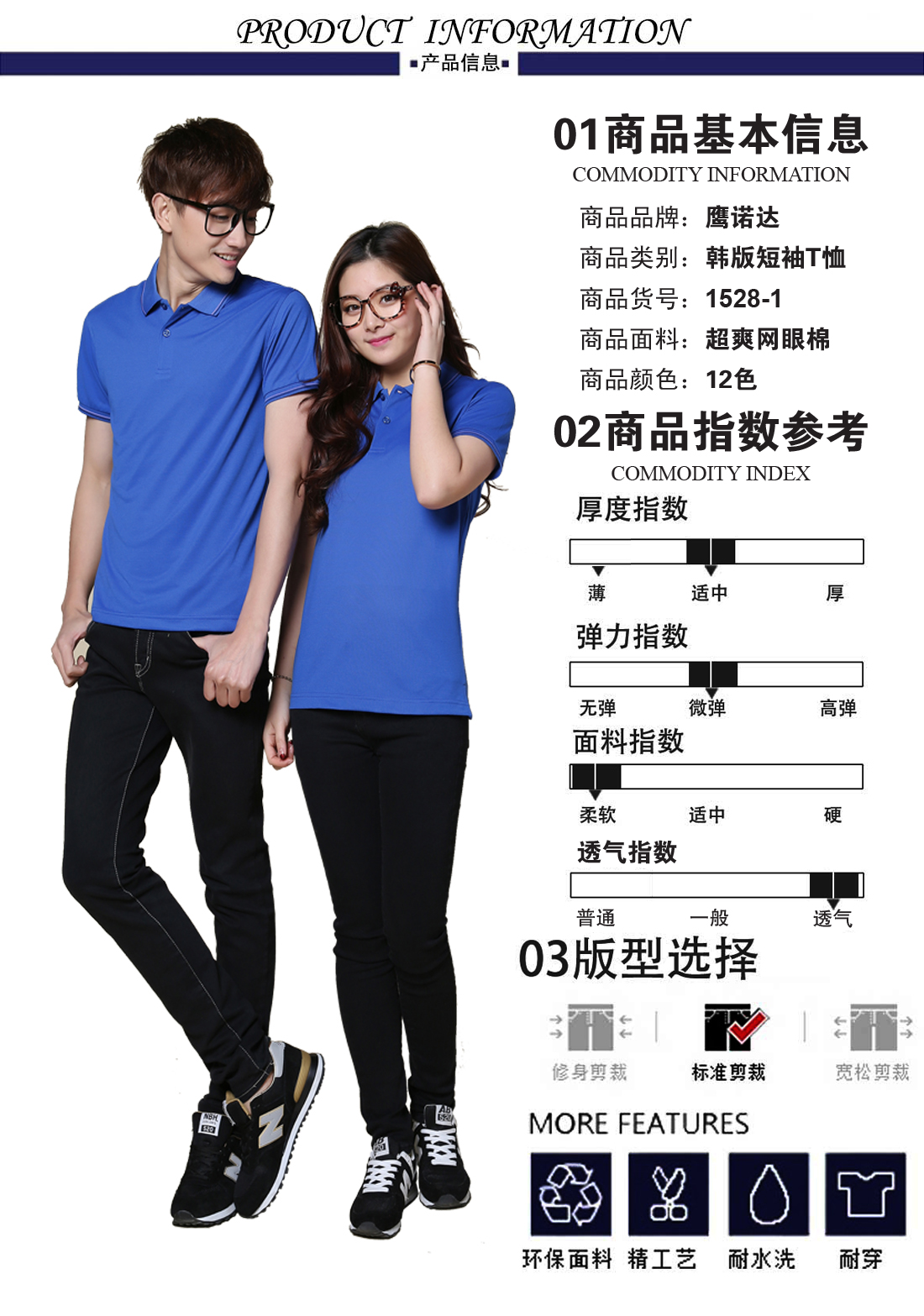 牛藍(lán)提花翻領(lǐng)超爽網(wǎng)眼棉T恤衫ID1528-1