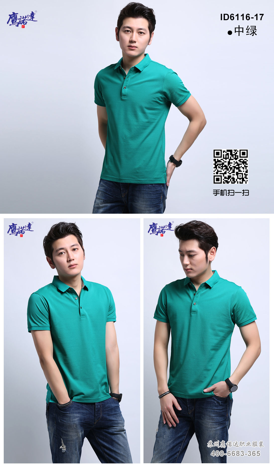 中綠提花領(lǐng)cvc抗起球纖維Polo衫ID6116-17