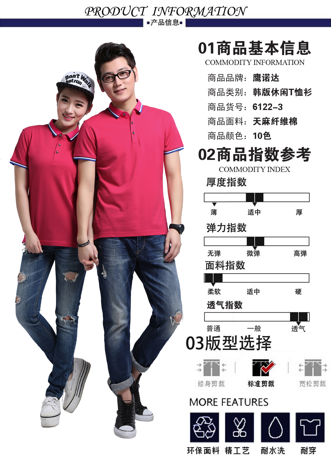 梅紅電腦提花領(lǐng)天麻纖維棉Polo衫ID6122-3