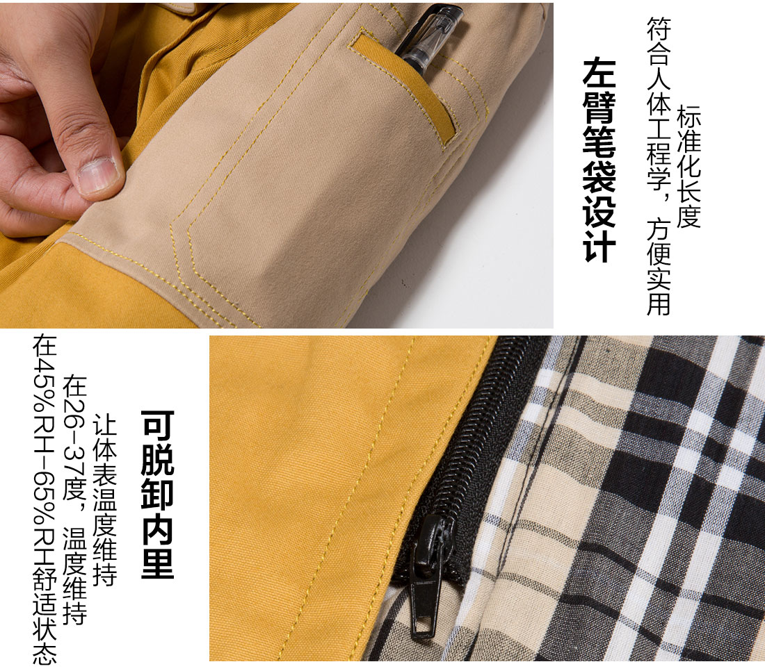 游客于 2018-06-10 12:39:51 發(fā)表冬季服裝廠家冬季工作服黃拼灰色MF20-4