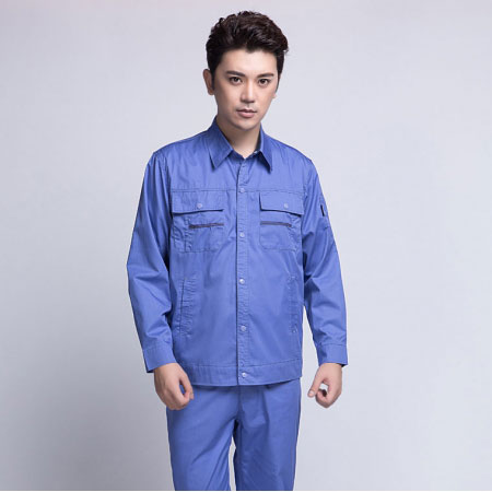 卡其拼藏青滌棉紗卡長袖工衣AC109